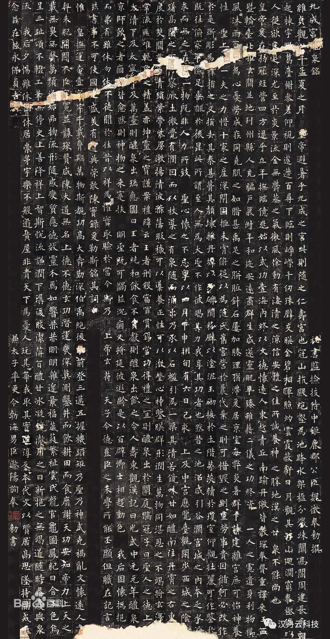 《九成宫醴泉铭》是唐贞观六年(632)由魏征撰文、欧阳询书丹而成的楷书书法作品。现存于陕西麟游县碑亭景区。