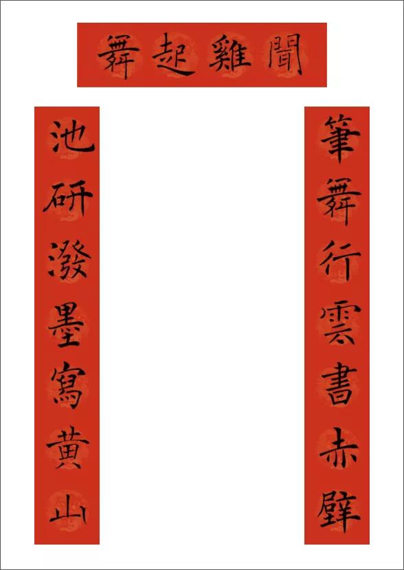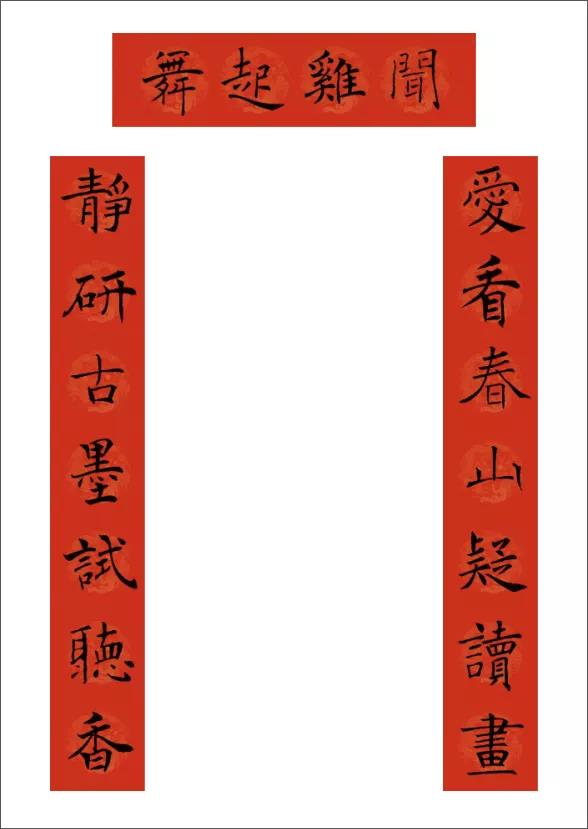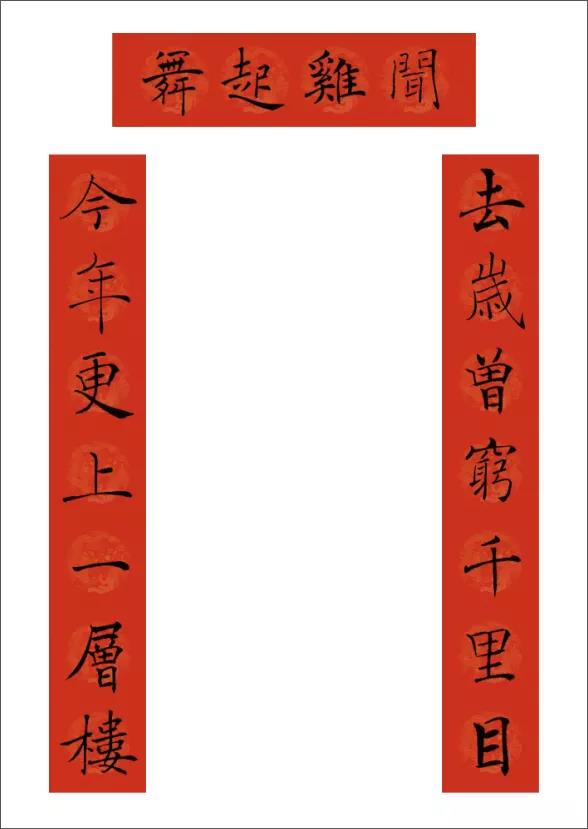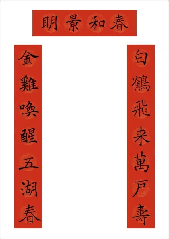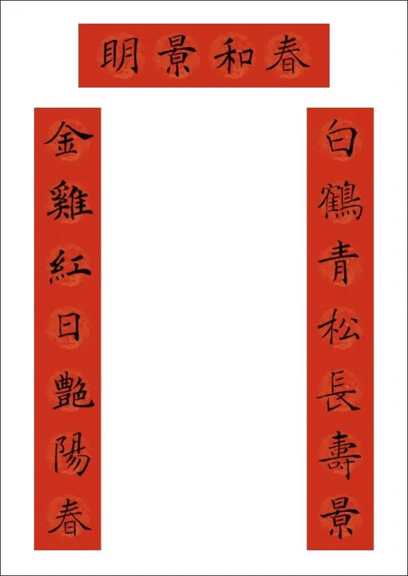 下聯:金雞紅日豔陽春