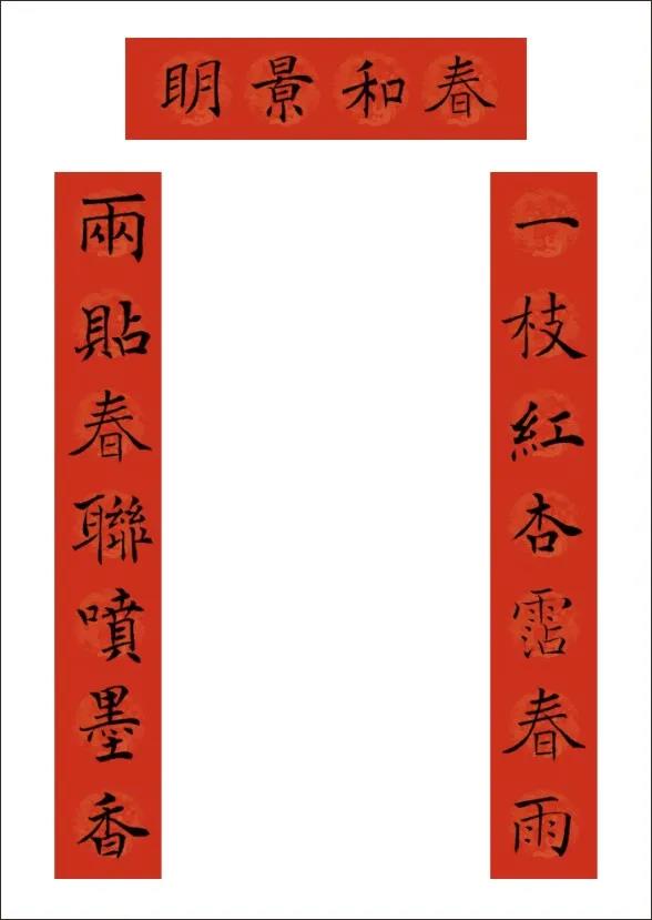 下聯:兩貼春聯噴墨香