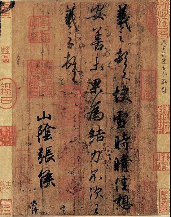 此帖是王羲之写给“山阴张侯”的一封简短的信。大雪过后,天候转晴,王羲之以这件短札向友人表达问候之意。清乾隆皇帝曾高度评价:“天下无双,古今鲜对”,“龙跳天门,虎卧凤阁”。他把此帖和王珣《伯远帖》、王献之《中秋帖》,一同收藏于养心殿西暖阁,并名其堂为“三希堂”,视为稀世瑰宝。