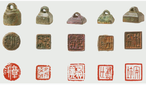 隋以后由于纸张的广泛使用,印章放弃了要来的按在泥土上的“封泥”的使用方法。蘸上印泥直接盖在纸上。隋唐官印印面尺寸大小因官职高低不同而不同,且随着开始行书的兴起,入印文字随之发生较大变化。