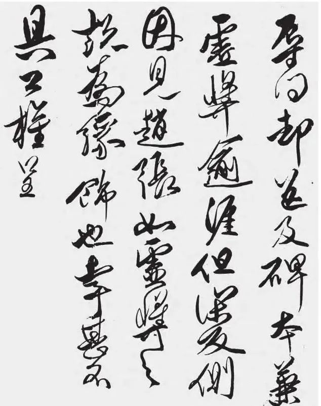 傅山临古学习,方法多变,不拘一格,师古不泥,他的临本连缀萦带,用笔奔放,气势磅礴。取其大势,并加以改造创新,浑然一体成自家之面目。傅山书法线条活泼,以篆隶入草,使草书的线条质量得到强化。他在草书上得与王铎并列,成为明末清初书坛的中兴之主。