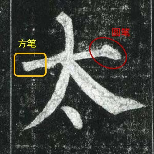 柳公权用笔方起圆收,是“柳骨”风格的最大特点。代表性笔画为横、撇、捺,横画大都方起圆收,骨力劲健、起止清楚、短横粗壮、长横格外瘦长,神采清秀;撇画锐利,以方笔取势,用笔干净利落;捺画粗重,捺脚方而长,捺尾较细。