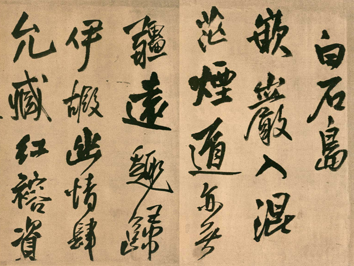 《苕溪诗卷》米芾38岁所书。此卷用笔中锋直下,落笔迅疾,纵横恣肆。尤其运锋变化丰富,点画波折连贯,提按起伏自然,毫无雕琢之痕。其结体舒畅,中宫微敛,保持了重心的平衡。通篇字体微向左倾,多攲侧之势,于险劲中求平夷。全卷书风真率自然,痛快淋漓,变化有致,逸趣盎然,反映了米芾中年书的典型面貌。