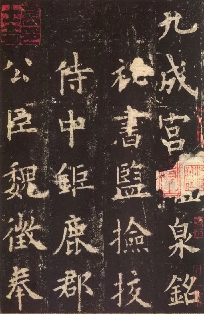 “欧体”字形结构修长严紧欹侧,笔法方中带圆,方劲中见浑厚,平正中见险绝。《九成宫醴泉铭》为欧体巅峰之作,对后世影响巨大。