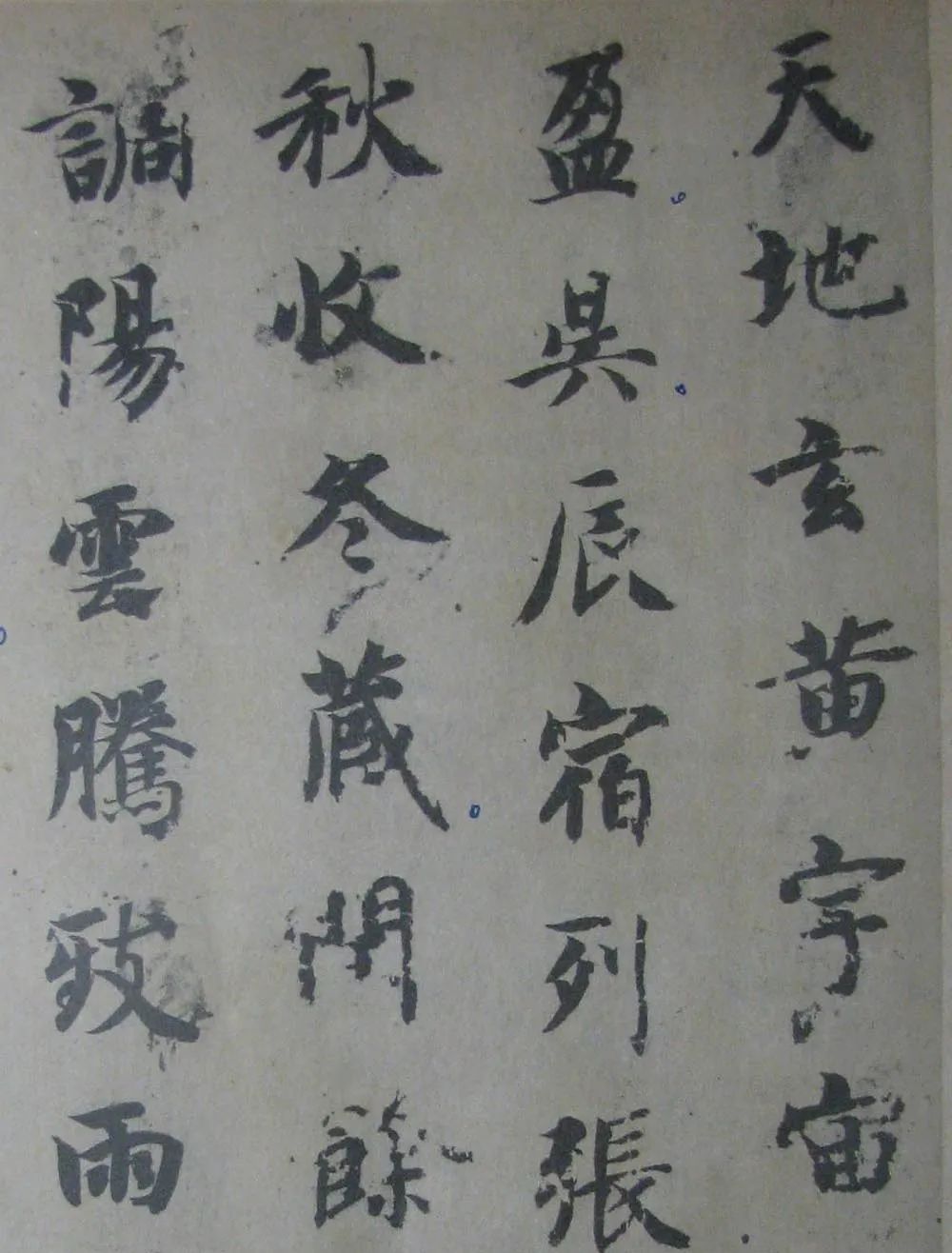 王羲之七世孙智永所书《真草千字文》,笔力遒劲,结构端庄,笔画的起止提按痕迹十分清晰,富有虚实变化。