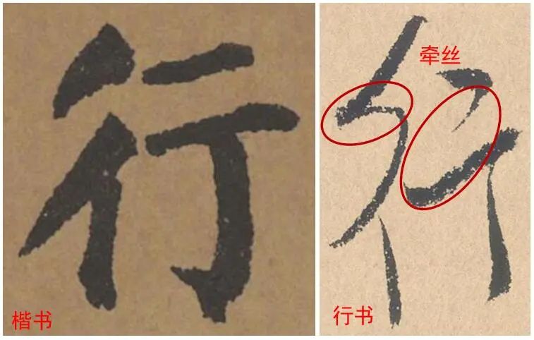 2. 笔画规整。楷书笔划规整,按照笔顺一笔一笔书写,彼此间没有连绵的牵丝。行书笔划间较为连贯,常有牵丝或连或断,让字体更显生动。