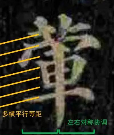 3. 均衡协调。楷书横竖笔划分布均匀,间距大致相等,各部分对称分布,均衡而协调。