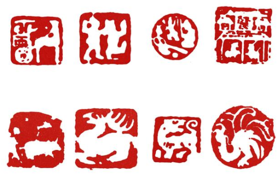 肖形印题材极广,除十二生肖、佛像、人像外,还有花卉、草虫及故事、成语等,均言简意赅,神态毕具。肖形印是集书法、中国画、篆刻为一体的综合艺术。