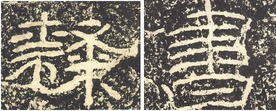 隶字横向取势,字形扁而宽,与篆书纵向取势,字形窄而长不同。
