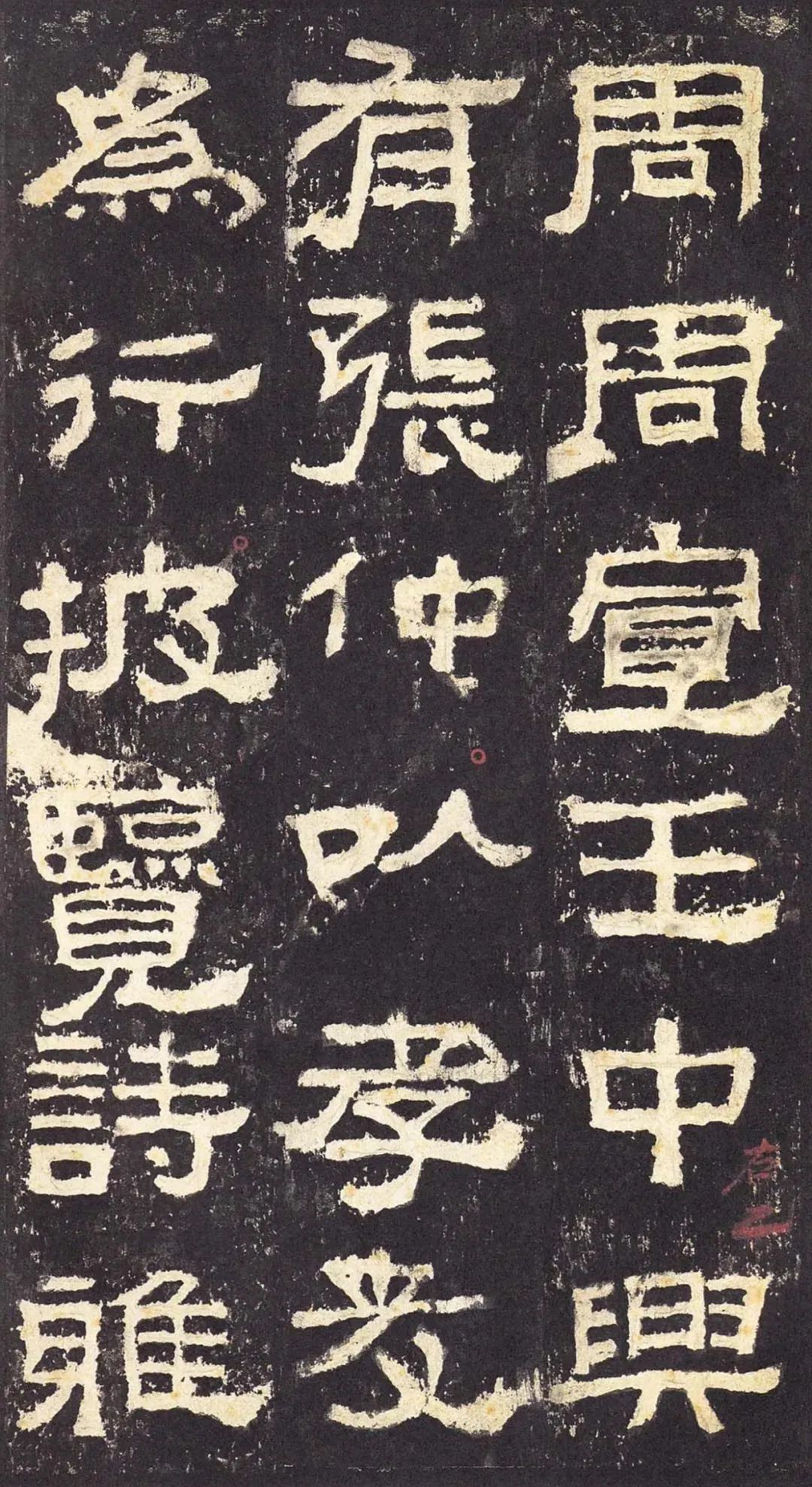 清杨守敬评:“是碑隶法实佳,翁覃溪(翁方纲)云:‘骨肉匀适,情文流畅。’诚非溢美,但其波磔已开唐人庸俗一路。”这正讲出了该碑的微妙处。临写此碑要特别注意波画的“逆入平出”,尤其是起笔处的逆势不能形迹外露。如“蚕头”的逆势形迹向上作侧锋外露,就流于了唐隶“蚕头”起笔侧露的庸俗风气。