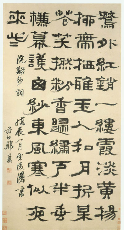 *郑簠《隶书浣溪纱词轴》纸本 上海博物馆藏*