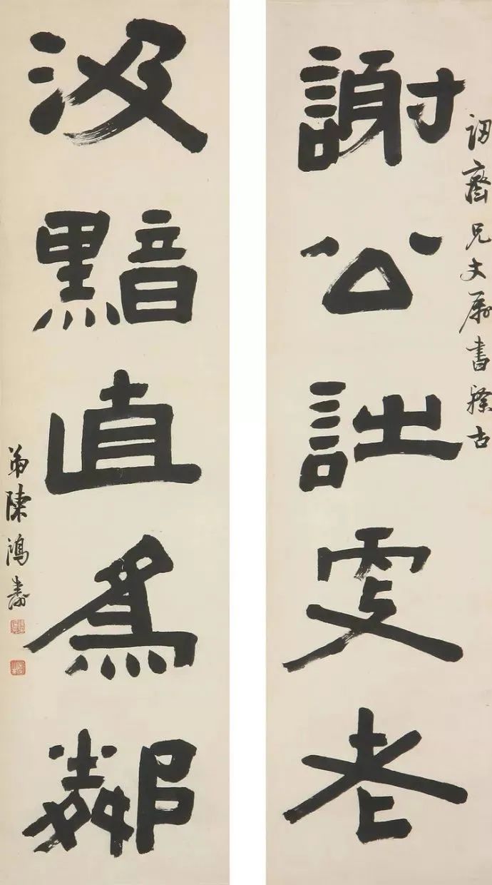 陈鸿寿(公元1768—1822年)浙江杭州人。所书气势宏伟,功力非凡。清蒋宝龄在《墨林今话》中说他:“酷嗜摩崖碑版,行楷古雅有法度,篆刻得之款识为多,精严古宕,人莫能及。其言曰:‘凡诗文书画,不必十分到家,乃见天趣’,询通论也。”