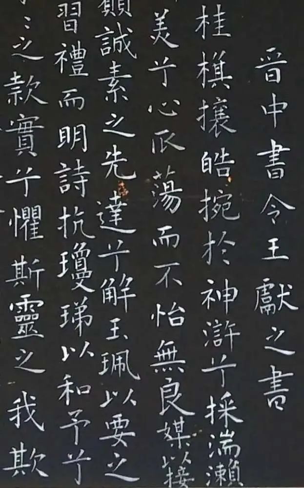 传王羲之所书小楷《黄庭经》系《外景经》。整幅作品布局排列紧密,法度严谨却字字利落,用笔起止舒展、笔势流畅,字体大小、字形正欹、笔画粗细,多有变化,体现了字间动态之美,却又保持了整体和谐。对后世产生了巨大影响。