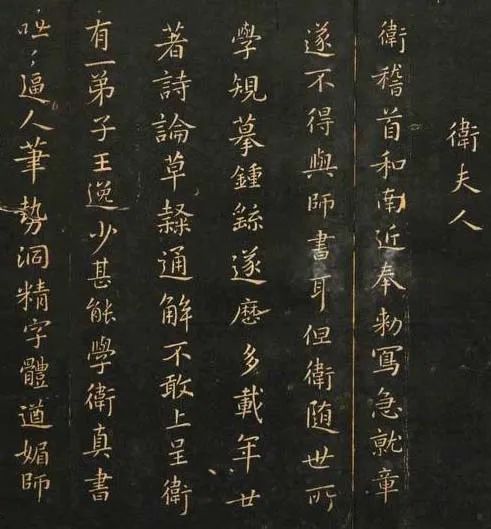 “簪花小楷”属小楷范畴,据传为书法家卫夫人所创,因字形清秀柔美,如古代女子盘发所用簪子上的雕花一般,故得此名。唐代诗人韦续作文《五十六种书》称赞道:“卫夫人书,如插花舞女,低昂芙蓉;又如美女登台,仙娥弄影;又若红莲映水,碧治浮霞。”