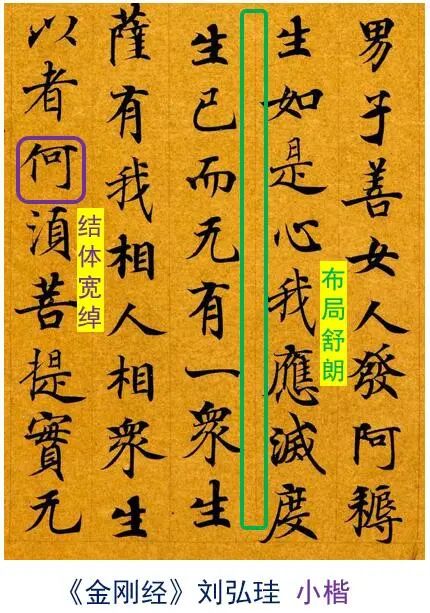 刘弘珪所写小楷《金刚经》,是武则天为其母亲祝寿时命其所书。其用笔细腻俊秀,结体方正规整,线条粗细混搭对比鲜明,布局舒朗有序气象博大,堪称唐代小楷上品佳作。