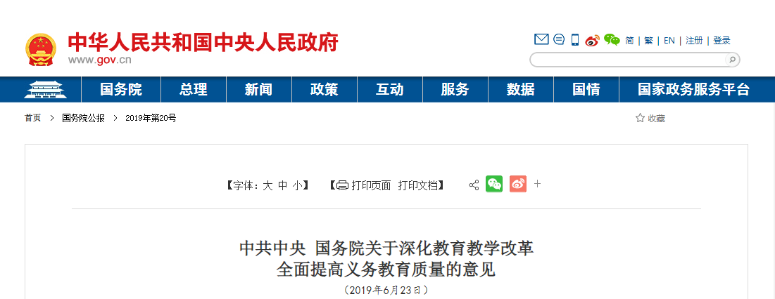 义务教育质量事关亿万少年儿童健康成长,事关国家发展,事关民族未来。为深入贯彻党的十九大精神和全国教育大会部署,加快推进教育现代化,建设教育强国,办好人民满意的教育,现就深化教育教学改革、全面提高义务教育质量提出如下意见。